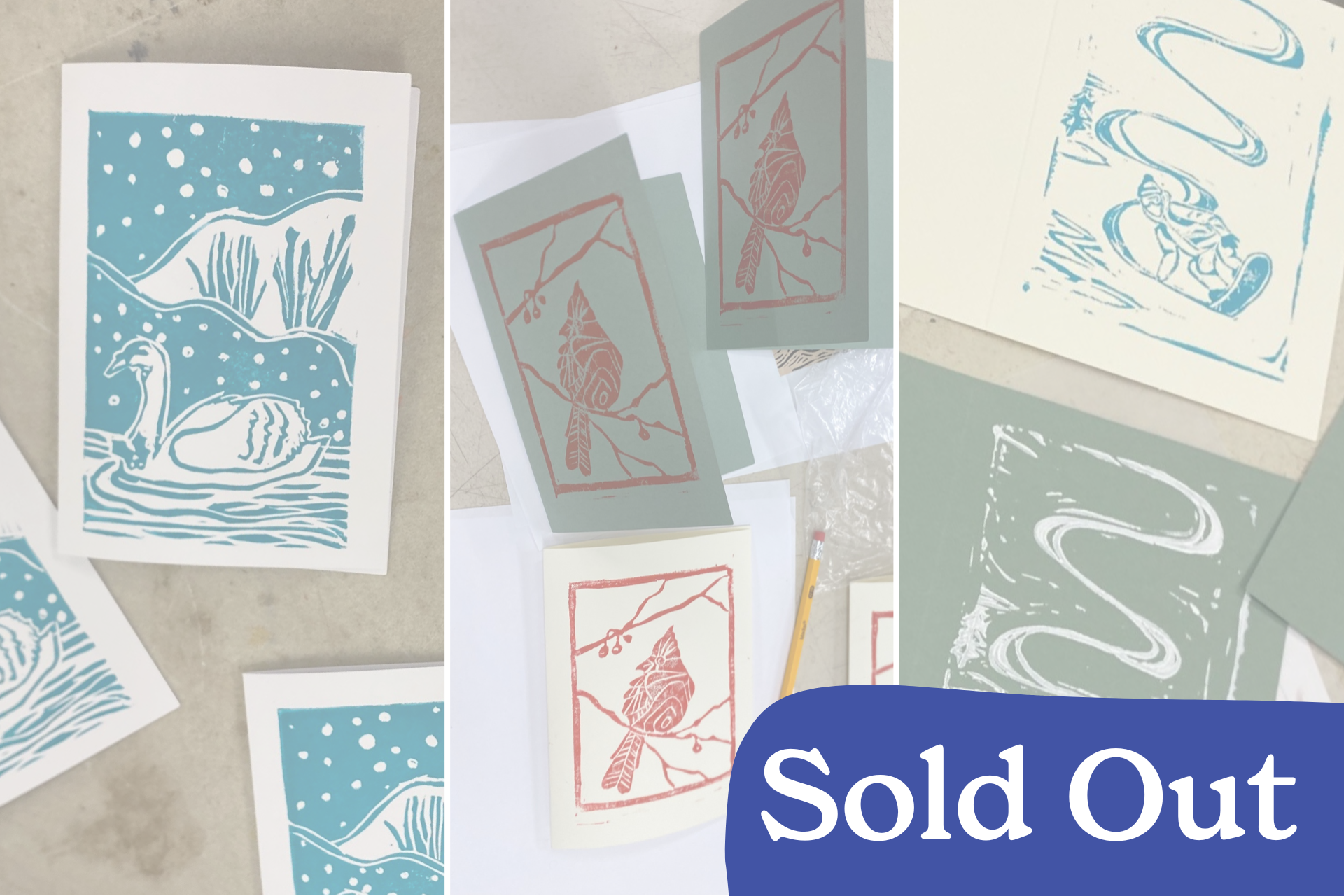 Our November Holiday Card Linocut Workshop is currently sold out, but we’ve added a second date! Get tickets for our December 13th Linocut Workshop here.